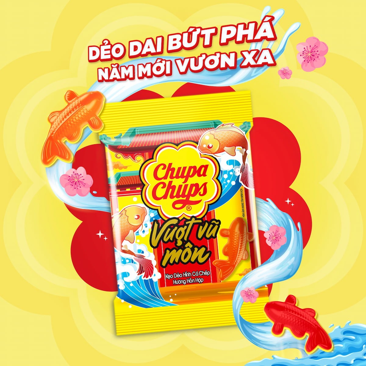 Cá chép vượt vũ môn tượng trưng cho sự kiên trì, nỗ lực và thăng tiến trong sự nghiệp. Minh họa cá chép kết hợp sóng nước, mây trời tạo cảm giác chuyển động, sinh động. Họa tiết này lý tưởng cho bao bì quà tặng doanh nghiệp hoặc sản phẩm mang thông điệp phát triển, thành công.