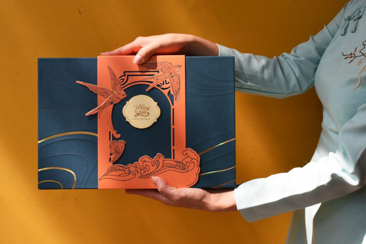 Biểu tượng đẹp nhưng phải đi cùng palette màu, texture và kỹ thuật in ấn phù hợp. Ép kim vàng cho nhóm biểu tượng tài lộc, dập nổi cho họa tiết hoa, hoặc sử dụng giấy mỹ thuật tạo hiệu ứng thủ công. Sự hòa quyện này giúp packaging Tết trở nên sang trọng và giàu cảm xúc.