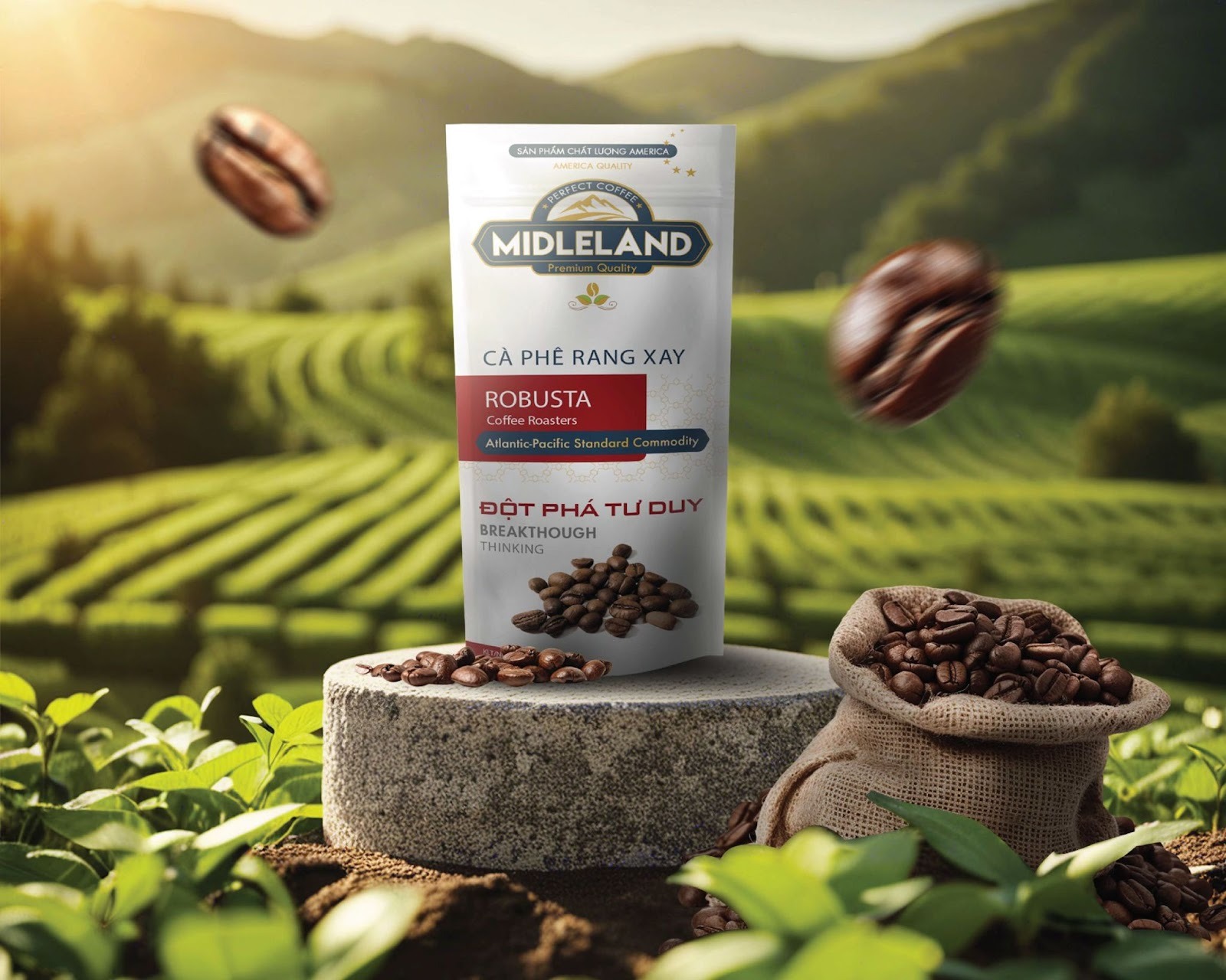 Các bao bì cà phê đẹp ở phân khúc này thường có điểm nhấn chất liệu như dập nổi, dập chìm, UV định hình hoặc ép kim kim loại để tăng trải nghiệm xúc giác. Đây là lựa chọn lý tưởng cho quà tặng, cà phê rang xay cao cấp hoặc thương hiệu hướng tới người tiêu dùng có gu thẩm mỹ tinh tế.
