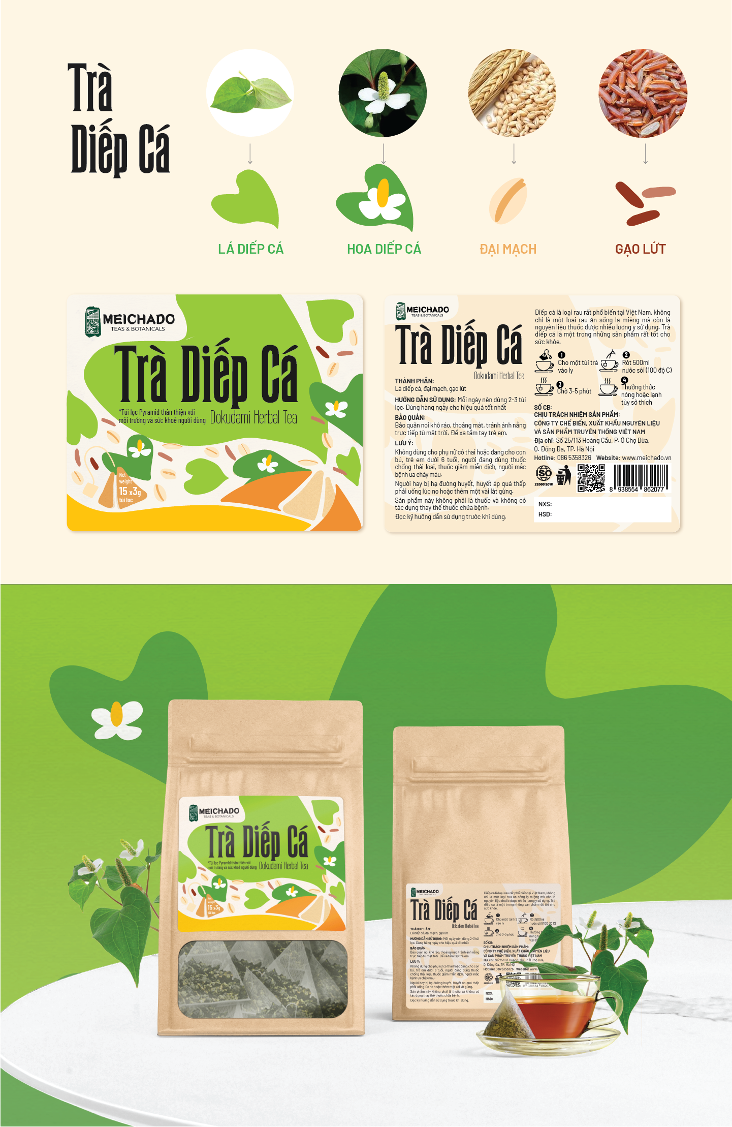 Minh họa vẽ tay gợi cảm giác tinh tế, chân thật và giàu tính thủ công. Đây là lựa chọn lý tưởng cho các thương hiệu hướng đến sự tự nhiên, cao cấp hoặc theo đuổi triết lý bền vững trong thiết kế bao bì sản phẩm.