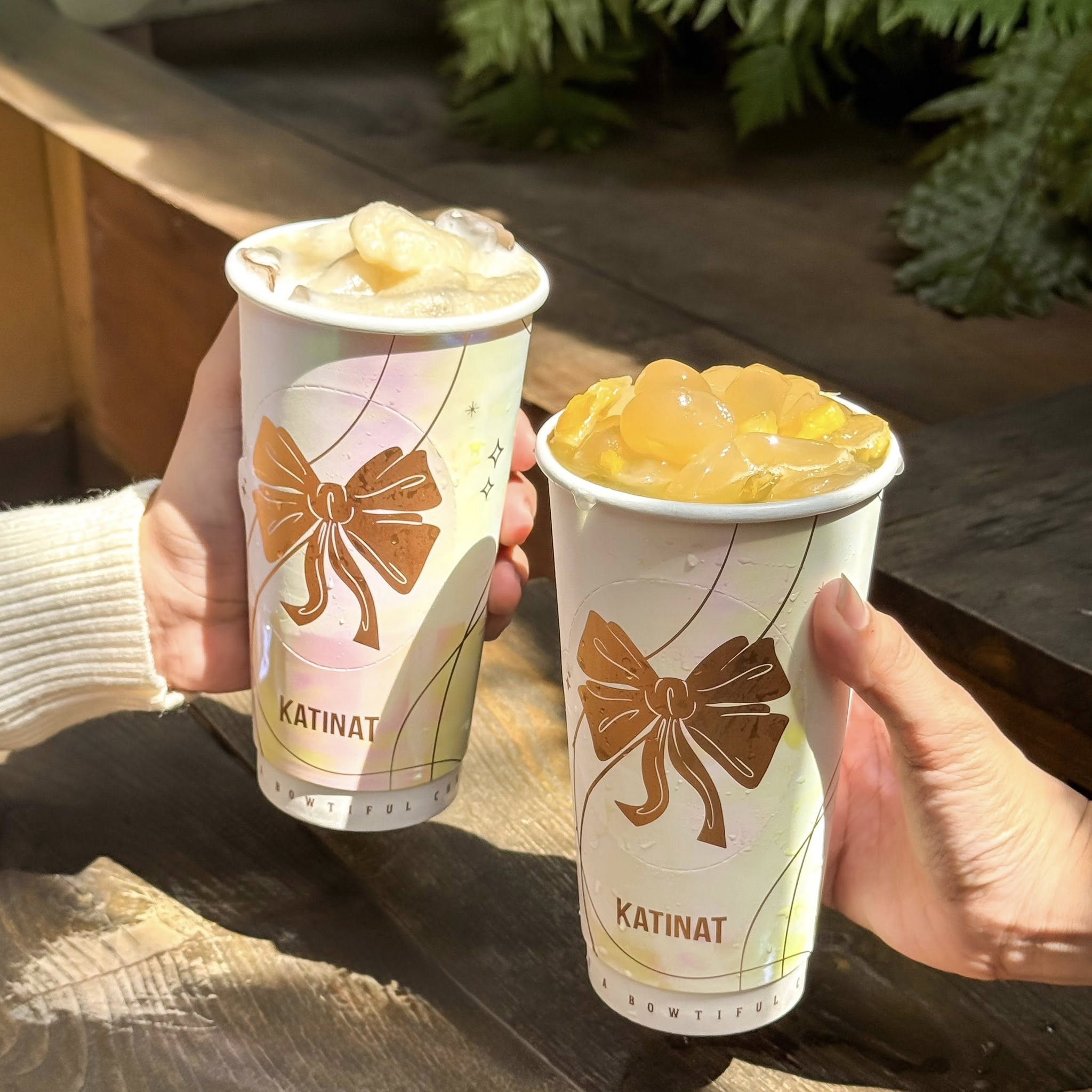 Khác biệt hoàn toàn với tinh thần ấm áp và hoài niệm của Phê La, bao bì Giáng sinh Katinat năm nay lựa chọn một hướng tiếp cận hiện đại và giàu tính lễ hội hơn. Bộ thiết kế bao bì Noel 2025 của thương hiệu xoay quanh concept “Ly Phép Màu”, khai thác hiệu ứng hologram chuyển sắc và họa tiết kim tuyến mô phỏng ánh sáng lấp lánh của mùa lễ hội tại Sài Gòn. Đây là phong cách thiết kế bao bì Noel mang tính thị giác cao, tạo cảm giác lung linh và cực kỳ phù hợp với nhu cầu check-in của giới trẻ.