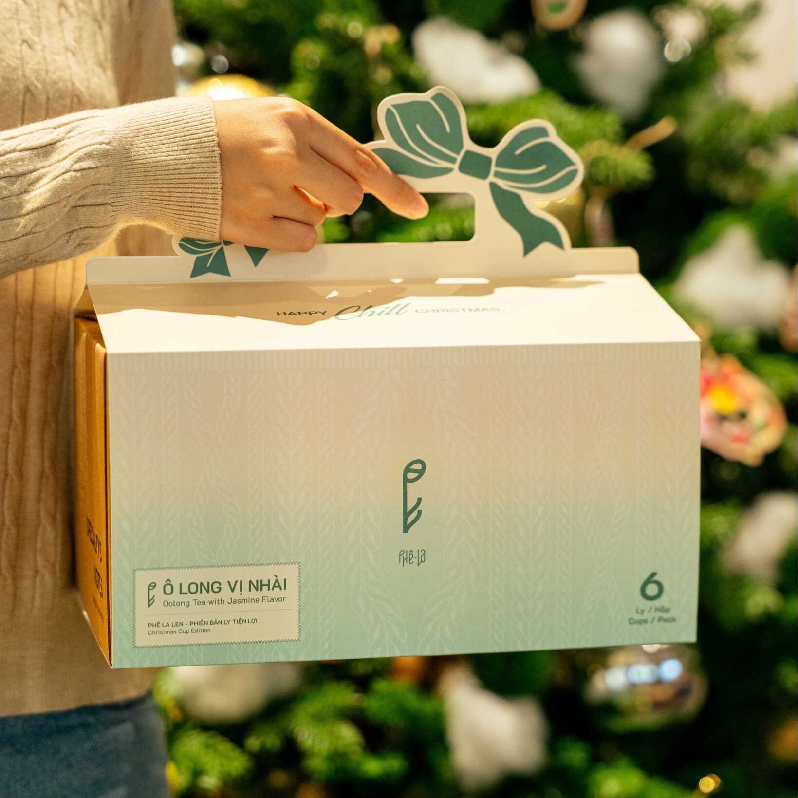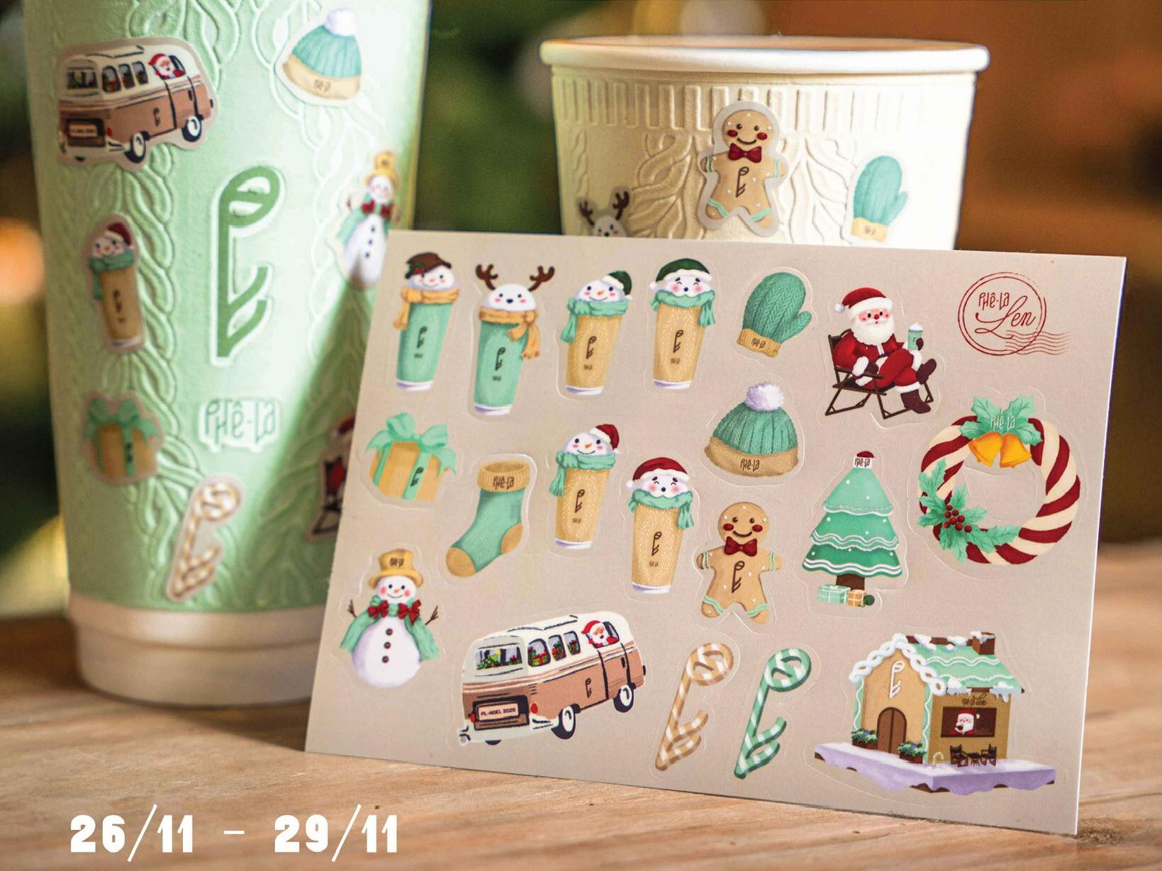 Không chỉ dừng ở ly nước, bộ bao bì Giáng sinh còn có sticker chủ đề len, tag treo, túi quà…, tạo thành hệ sinh thái hình ảnh đồng nhất. Khi khách hàng check-in, mọi chi tiết đều kết nối với câu chuyện thương hiệu. Đây chính là minh chứng rõ ràng cho khả năng Phê La kể chuyện bằng bao bì và biến mỗi sản phẩm thành món quà tinh thần mang dấu ấn riêng.