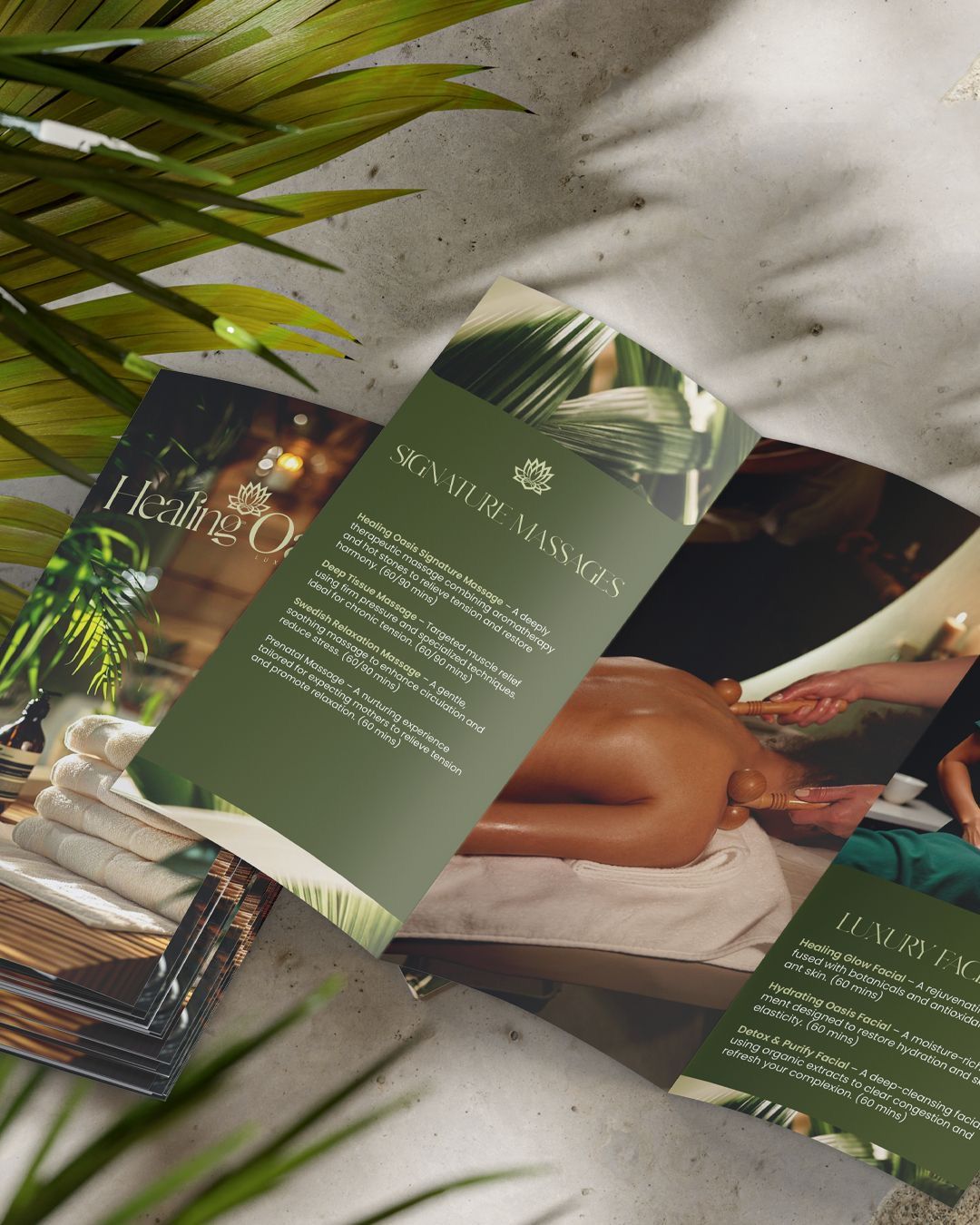 Sau khi có nền tảng, bước tiếp theo là triển khai nhận diện vào các ấn phẩm phục vụ vận hành và trải nghiệm tại spa: